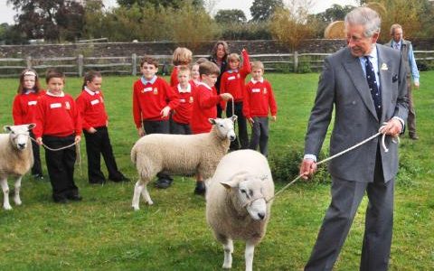 The Prince of Wales introduces school children to his sheep at Highgrove CREDIT: ANWAR HUSSEIN
