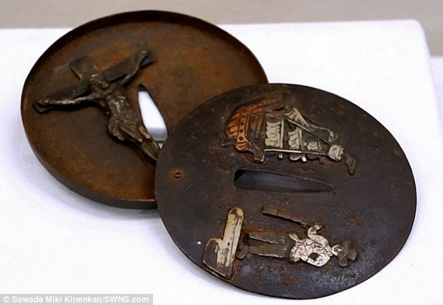 Samurais were banned from following religions after feudal Japan introduced strict anti-Christian measures in the 16th century. But the devout swordsmen commissioned metalsmiths to produce sword guards with crucifixes and other symbols (pictured) hidden in their weapons