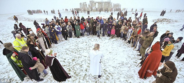 Hundreds of pagans turn up at Stonehenge for the winter solstice... on the WRONG DAY