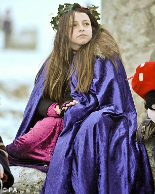 Young follower: Jasmine Arbon, 10, from Swindon, watches the celebrations inside the Stone Circle