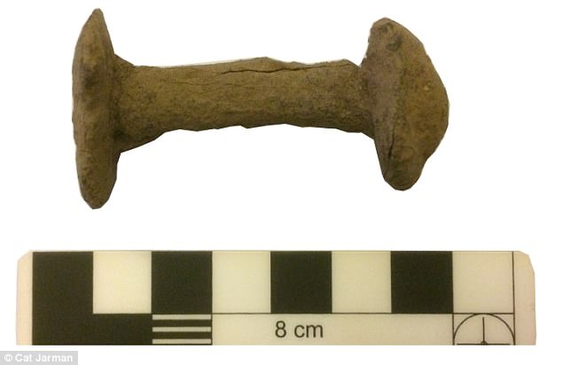 Evidence for metal working was discovered, as well as a substantial number of nails, the archaeologists said. Two of the nails had roves, a particular feature of Viking ship nails (pictured), as well as several lead gaming pieces