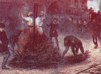 Queen Mary, queen of England and Ireland (the daughter of Henry VIII), reigned from 1553 to 1558. A Catholic, she executed 300 Protestants during her terrible reign, earning her the nickname "Bloody Mary".