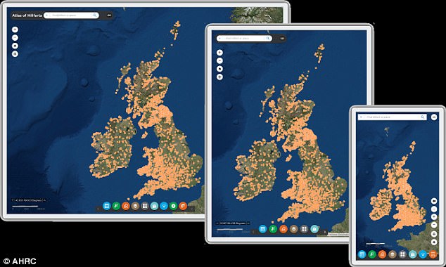Locations and details of thousands of ancient hill forts found across the landscapes of the UK and Ireland were mapped in an online database (pictured) for the first time in June, 2017. The database will work on smartphones, tablets and computers