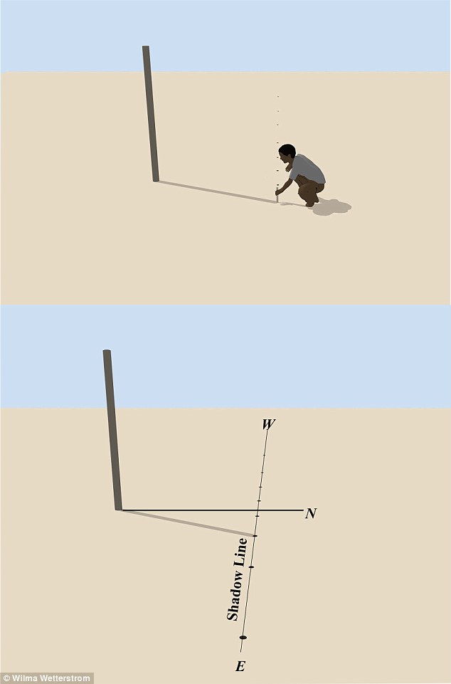 He plotted the path of the sun throughout the day using the shadow it cast from a wooden pole or 'gnomon' stuck vertically into the ground.