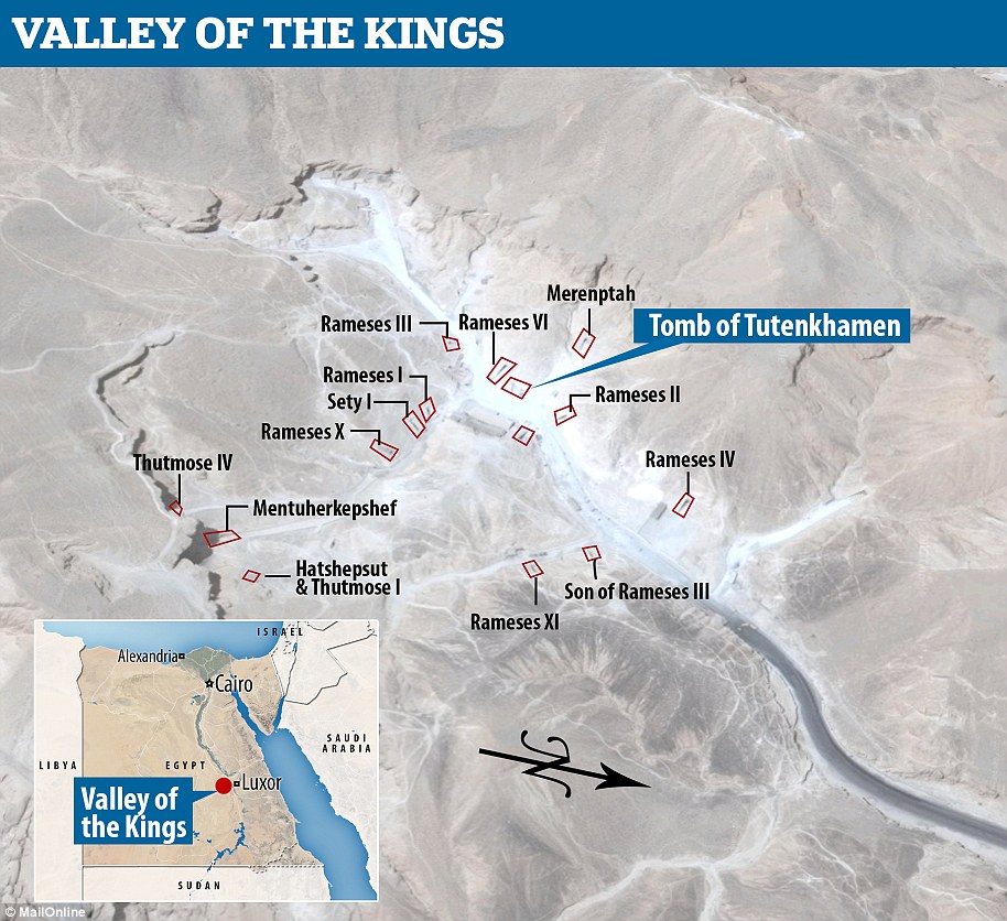 The Valley of the Kings in upper Egypt is one of the country's main tourist attractions, situated next to the Giza pyramid complex. The most famous pharaoh at the site is Tutankhamen, whose tomb was discovered in 1922