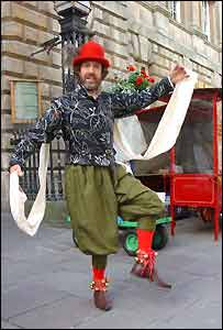 Inspired by the Shakespearean actor Will Kemp, he dressed in traditional 16th Century costume.