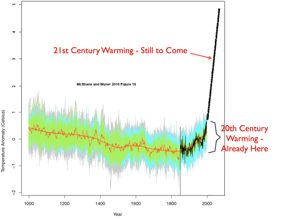 The graph shows temperatures before present so the hockey stick already exists, it's not a projection.