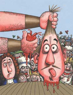 13th October 1660 'I went out to Charing Cross to see Major-Generall Harrison hanged, drawn, and quartered - which was done there - he looking as cheerfully as any man could do in that condition. He was presently cut down and his head and his heart shown to the people, at which there was great shouts of joy.'