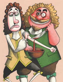 Water had to be bought from watercarriers unless you were so poor that you collected your own from the river or one of the few public wells, or so rich that you subscribed to a private water company such as the New River. Their mains were made of elm trunks, and the domestic supply pipes were lead. The supply ran only a few hours at a time, so you had to store your water in lead tanks. No wonder it tasted foul, but it sufficed for boiling meat, and for very limited personal ablutions (Samuel Pepys was sure he caught a cold by washing his feet). Household washing used lye made from ashes and urine.