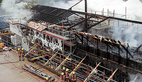 Police sources said no one was working on the ship at the time and there did not appear to be any flammable materials on the site. "It's early stages, we cannot get to the seat of the blaze because it's still too hot, but it's hard to see how it could be an accident. Arson is certainly one line of inquiry."