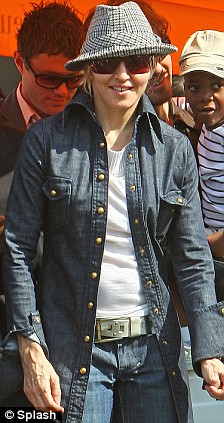 Polo fans: Madonna's on/off toyboy Jesus Luz, left, was at the event too, to which the singer wore denim and a tweed hat, right