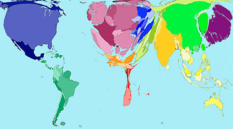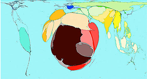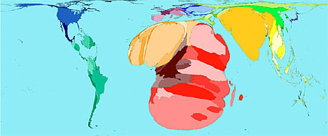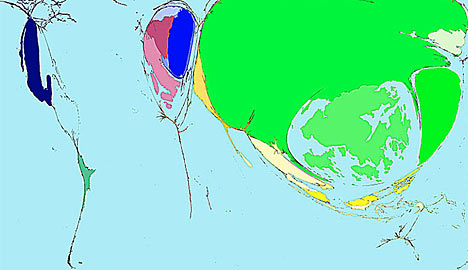 The cartograms were produced in a unique collaboration between the universities of Michigan in the U.S. and Sheffield in Britain. Here are images and more details on some of the most fascinating...