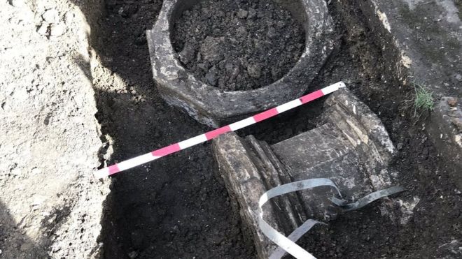 "We're actually just taking it down below the topsoil," she said. "So to find a 16th Century baptismal font in perfect condition in the ground is just amazing."