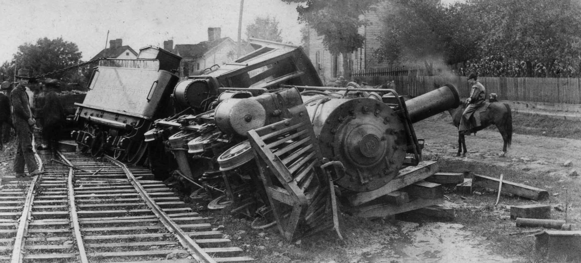 It appears somebody left a wrench on the track and due to the jet fuel weakening the steel the train fell over in it;s own footprint.