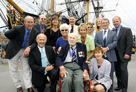 Henry Allingham - born June 6th 1896 - with family members at Nelson's flagship HMS Victory