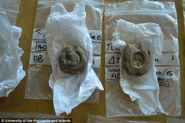 A treasure-trove of Iron-Age artefacts has been found on Scotland's Orkney islands. Archaeologists excavating the site found evidence of a 'great feast' that date back around 2,000 years. Pictured is a ring-headed pin moulds with a cast pin