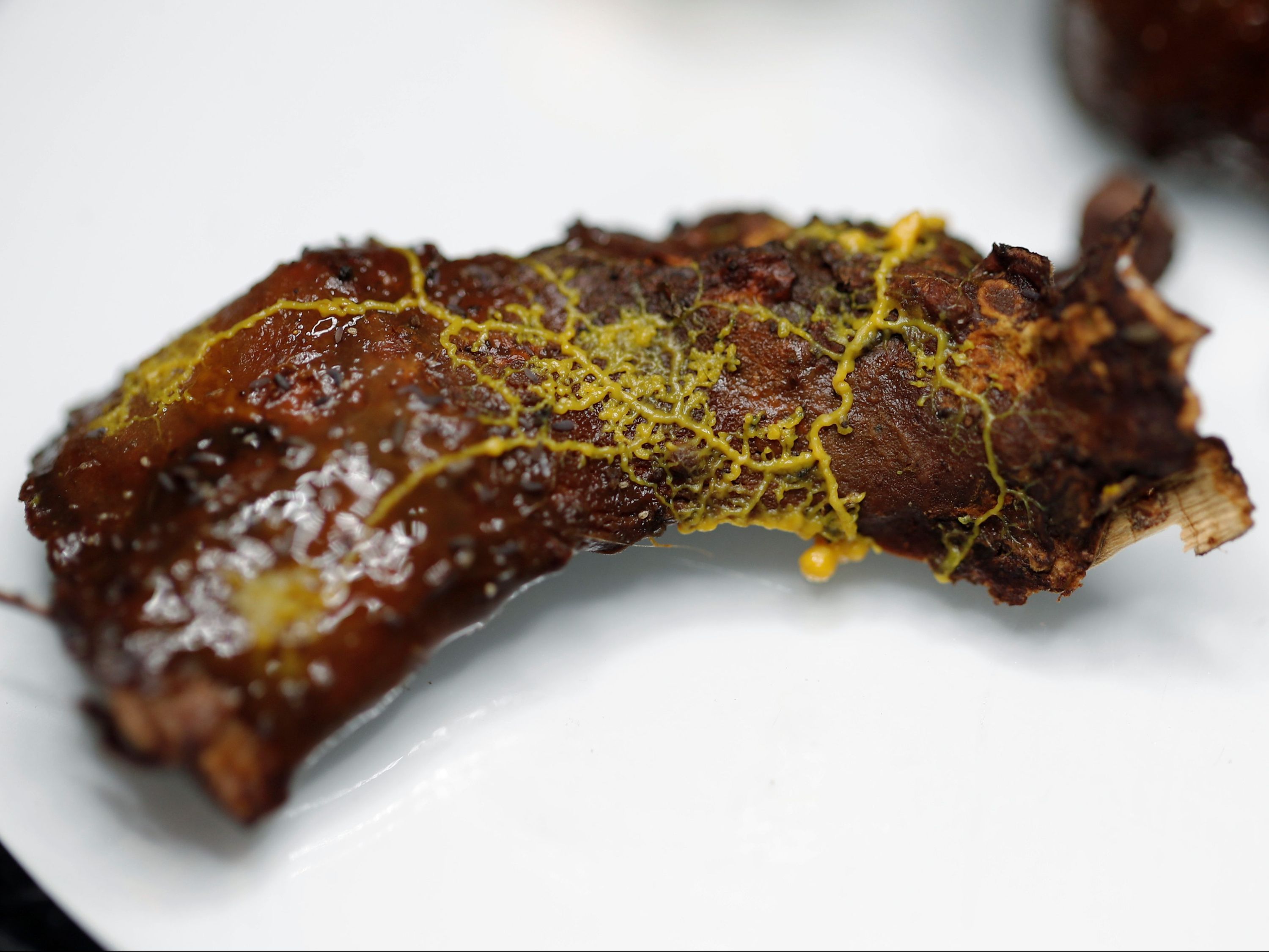 The "blob," slime mould (Physarum polycephalum), a single-celled organism forming over a piece of tree chunk, is pictured at the Paris Zoological Park during a press preview in Paris, Oct. 16, 2019. (REUTERS/Benoit Tessier)