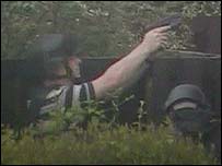 "The police were in full control and they kept everybody back and after a short while an ambulance reversed up on to the path and we saw the shot police officer being lifted into the ambulance."
