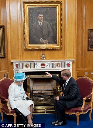 She was shown inside the Taoiseach's office, where there is a portrait of Michael Collins - the signatory to the 1921 Anglo-Irish treaty for the partition of Ireland (which saw the northern part of the island of Ireland remain in the UK according to its people's wishes but the rest of Ireland secede from the UK as a separate, independent nation).