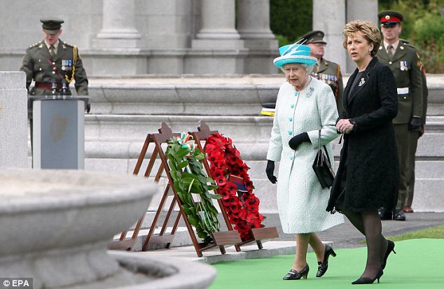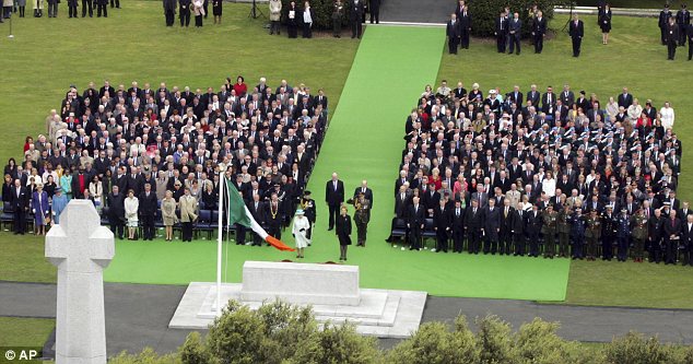 She and Irish President Mary McAleese then stepped back, bowed and observed a minute's silence as politicians from all sides looked on.