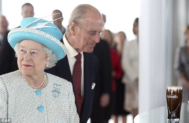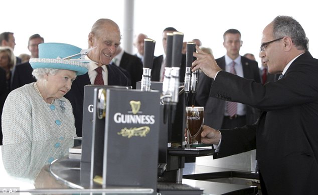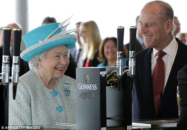 At the bar: The Queen and Prince Philip were in great spirits during their tour of the Guinness storehouse
