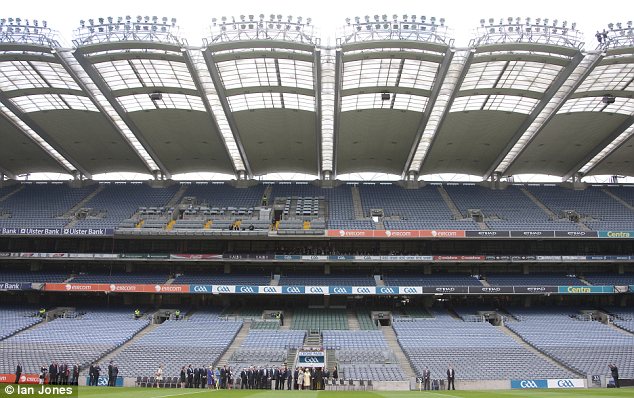 The monarch stopped at the venue in Dublin, which is the home of Ireland's Gaelic Athletic Association, with Irish president Mary McAleese.