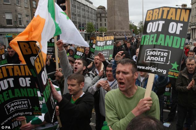 Security concerns: Republican Eirigi demonstrate yesterday near the Garden of Remembrance where the Queen will visit during her stay