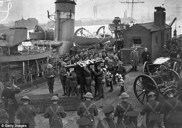 The bodies of nine British officers killed in Dublin five days earlier are taken back to England for burial on the destroyer 'HMS Seawolf'. The men had been assassinated by the IRA on the morning of November 21, leading to the Bloody Sunday shootings at a Croke Park later that day