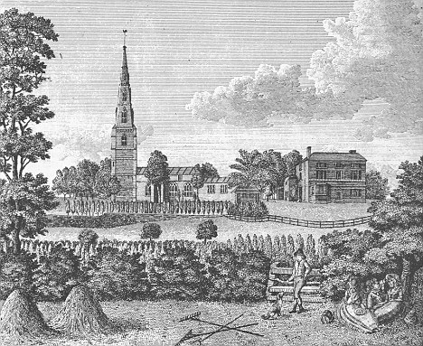 Tranquil: St Wilfrid's church in Kibworth, Leicestershire in the late 18th century around 300 hundred years after the Gilberts were executed