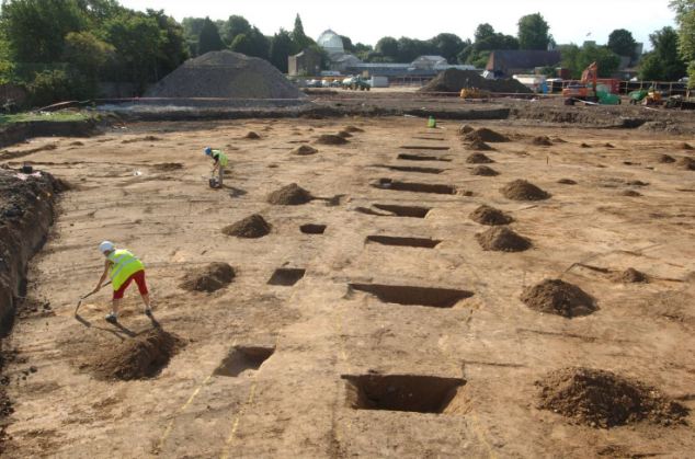 Ancient find: The scale of the site unearthed in Syon Park is clear as excavators work to unearth more remains