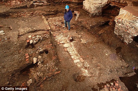 The remains were discovered underneath a less-than-romantic modern lock-up garage, although the stage is believed to be somewhere underneath a housing development.