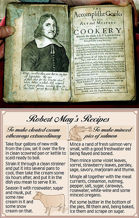 However, the dishes back then were certainly different. May's book - The Accomplisht Cook, Or The Art And Mystery Of Cookery - features recipes for such delights as boiled curlew and hare mince pies.