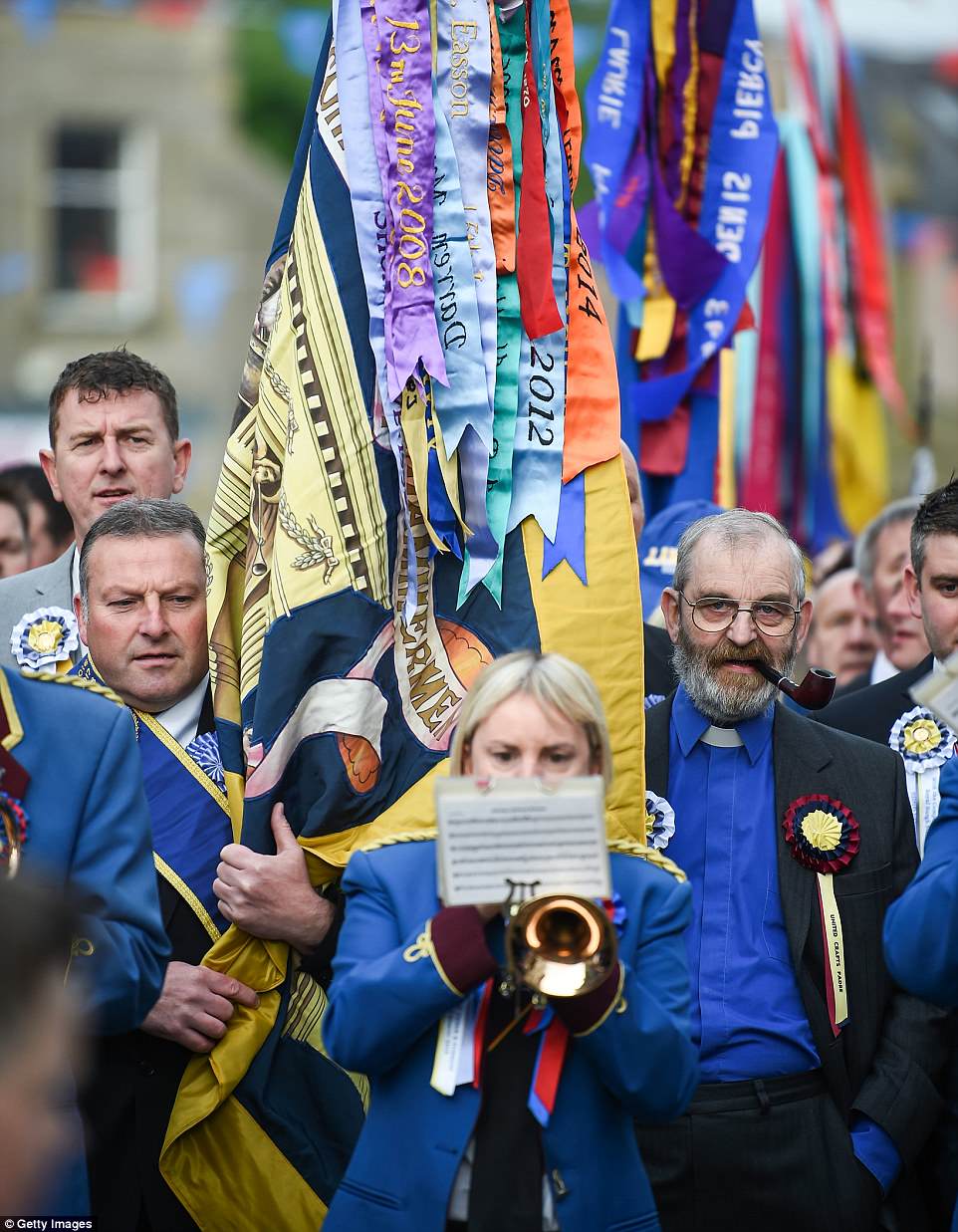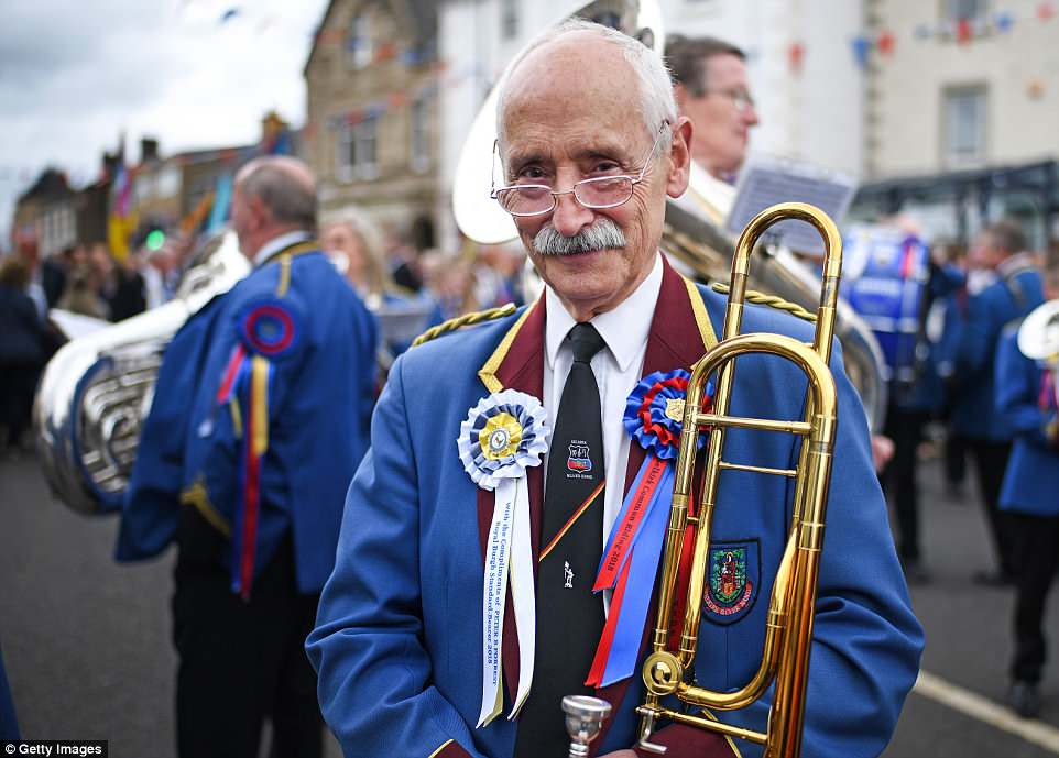 One man returned from the Battle of Flodden holding a blood-stained, English flag. Pictured a band playing at Common Riding in Selkirk