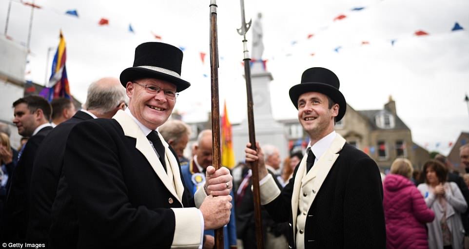 Thousands lined the streets of the town to enjoy the ceremony which has a Royal Standard Bearer as the central figure