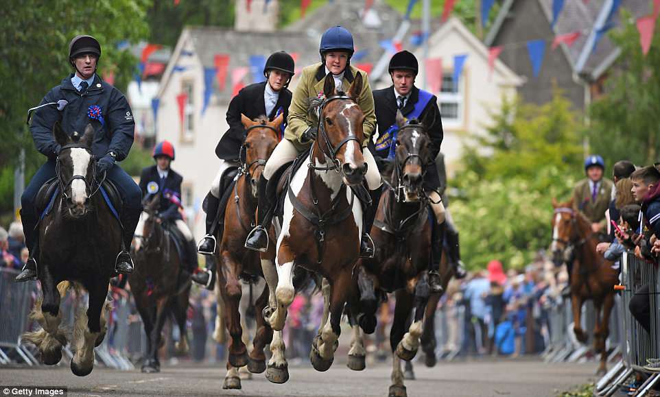 For king and country! Riders charge through town to mark Battle of Flodden when Scottish ruler James IV died in bloody 1513 clash with the English becoming the last British Isles' monarch to die in the field