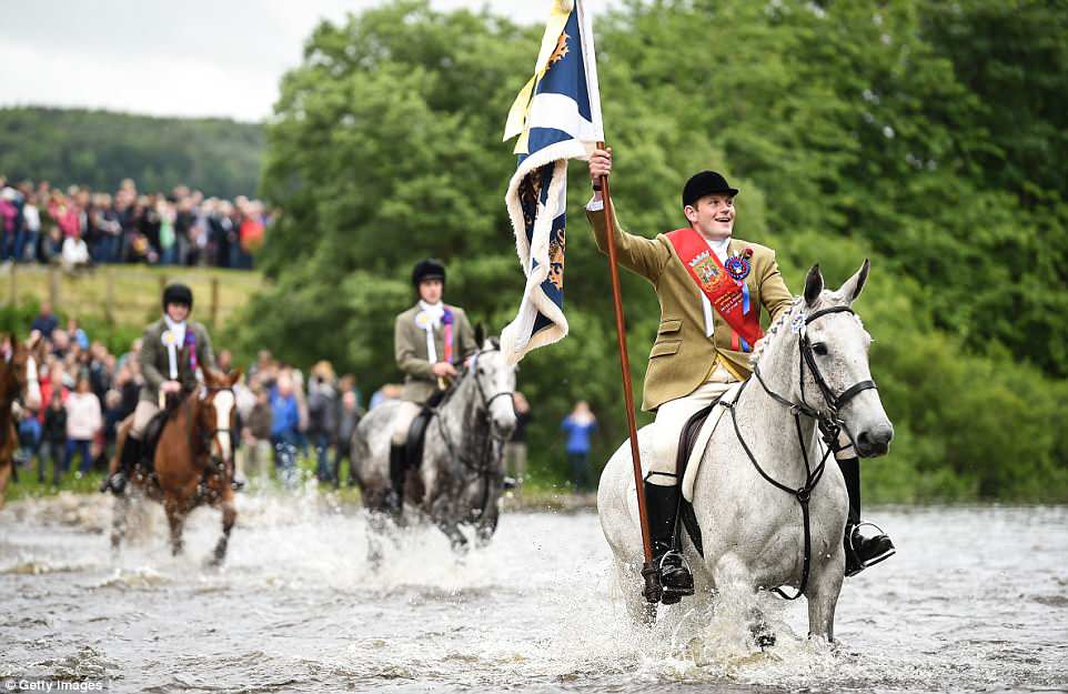 The event dating from the Battle of Flodden in 1513, remembers the story of Flodden, when Selkirk sent 80 men into battle with the Scottish Kind. Our picture shows riders ford the river Ettrick, as they take part in Selkirk's Common Riding