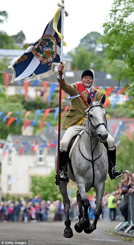 For king and country! Riders charge through town to mark Battle of Flodden when Scottish ruler James IV died in bloody 1513 clash with the English becoming the last British Isles' monarch to die in the field