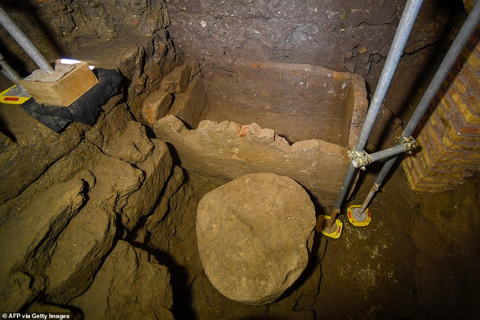 Researchers from the Colosseum Archaeological Park investigated the claims and found a 4.6ft rock sarcophagus and circular alter that match descriptions from ancient scholars and Roman folklore.