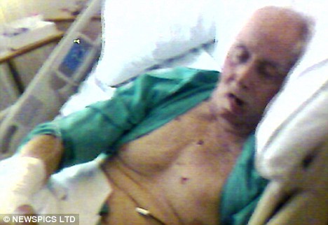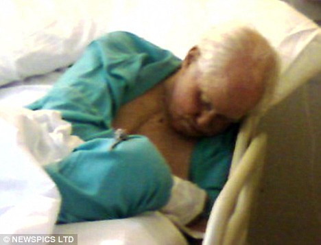 Struggling for breath, the frail 79-year-old's face is a mask of pain as he is monitored by cardiac machines hooked up to his chest.