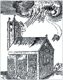 The Great Thunderstorm of Widecombe-in-the-Moor in Dartmoor, took place on Sunday, 21 October 1638, when the church of St Pancras was apparently struck by ball lightning during a severe thunderstorm. An afternoon service was taking place at the time, and the building was packed with approximately 300 worshippers. Four of them were killed, around 60 injured, and the building severely damaged.