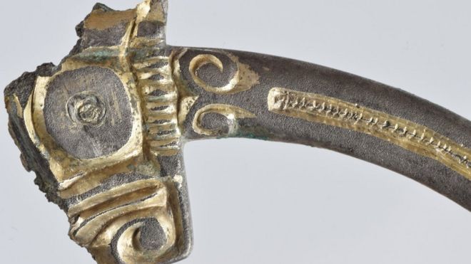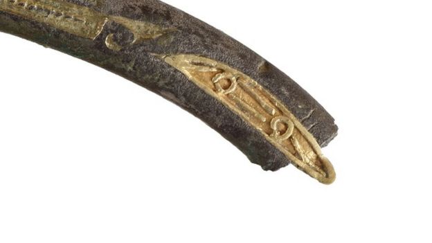 "Also the inlaid wire has been examined under magnification and this shows that originally it was beaded and that this has been worn away through wear - so we can say that it was worn and probably treasured by its original owner."