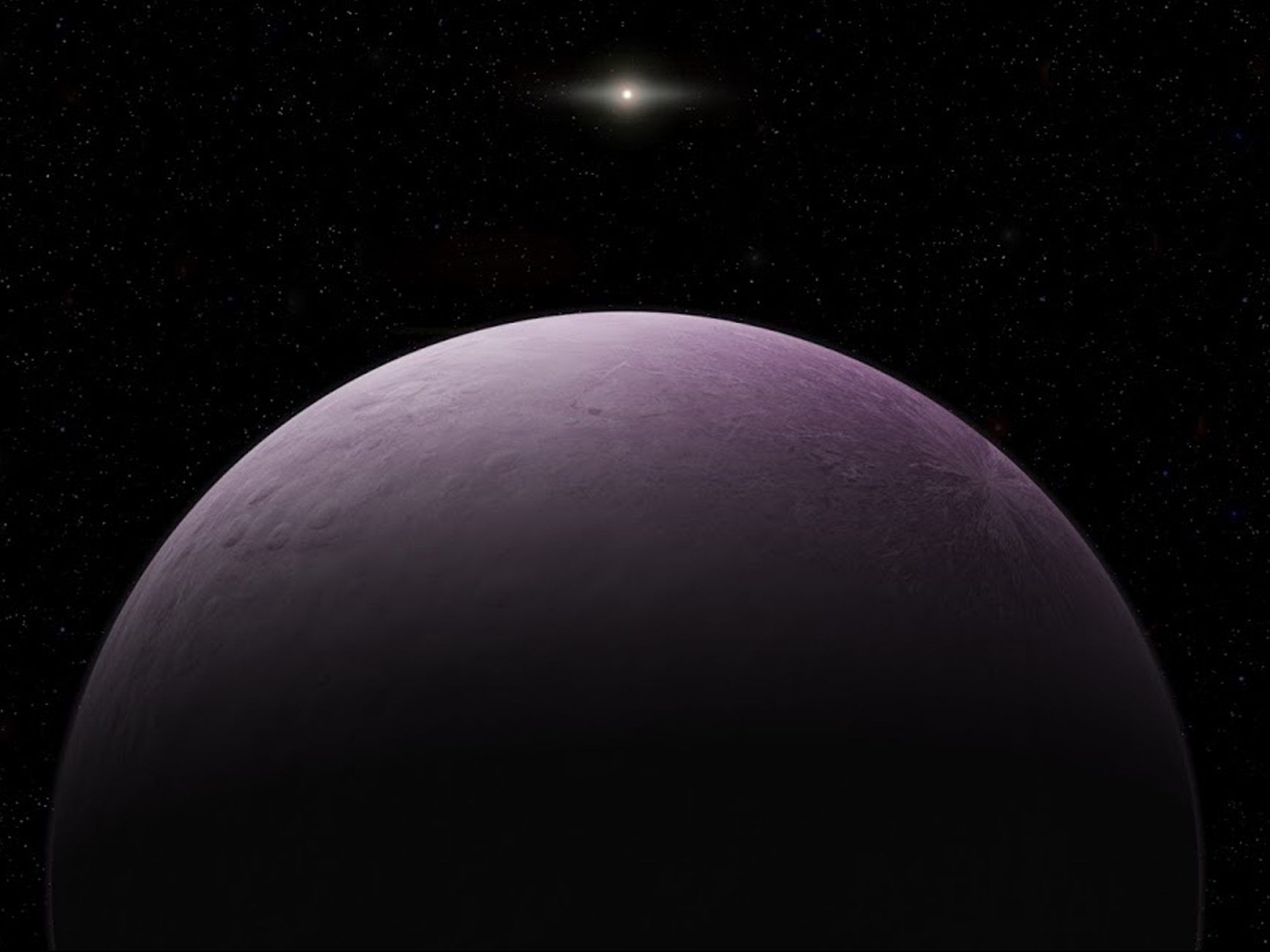 This image provided by the Carnegie Institution for Science shows an artist's concept of a dwarf planet that astronomers say is the farthest known object in our solar system, which they have nicknamed "Farout." The International Astronomical Union's Minor Planet Center announced the discovery of the pink cosmic body Monday, Dec. 17, 2018. (Roberto Molar Candanosa/Carnegie Institution for Science via AP)