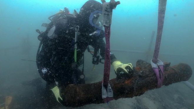 Three swivel guns have so far been brought to the surface