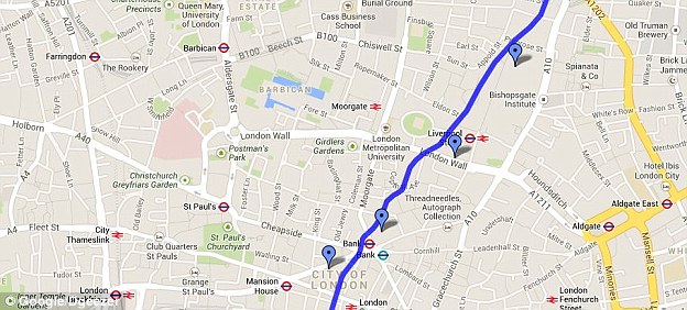 He went on: 'The skulls are possibly from a known Roman burial ground about 50 metres up river from our Liverpool Street station work site.