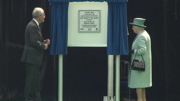 The Queen unveiled a plaque marking Monday's events