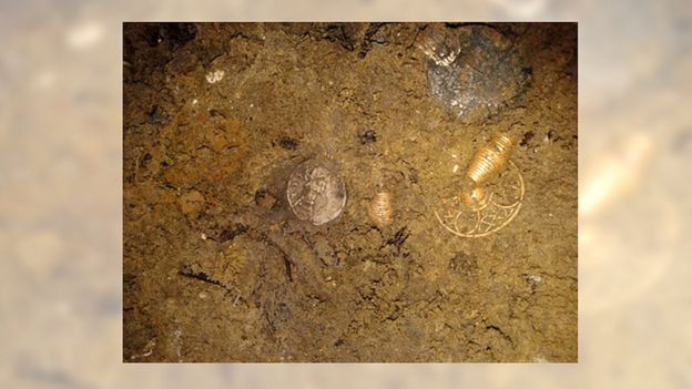 The British Museum report for the coroner listed a number of precious coins and jewellery found alongside the woman's skeleton.