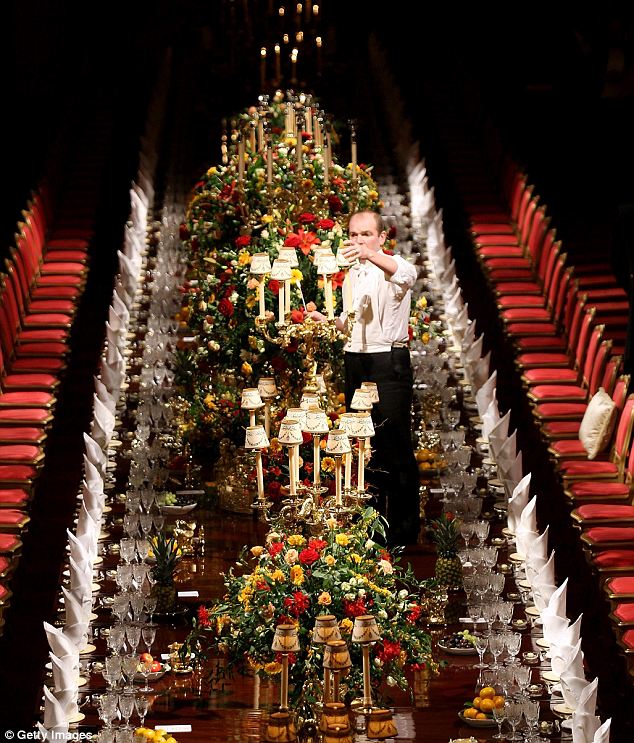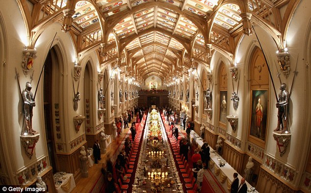 Through the keyhole: Stunning pictures capture the pomp and splendour of Queen's banquet at Windsor Castle
