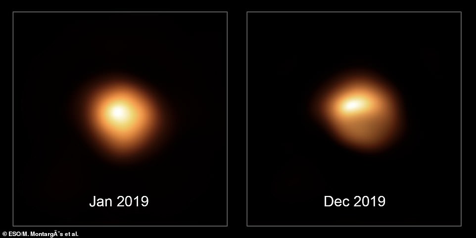 The stunning new images of the red supergiant were captured by the 'Very Large Telescope' in Chile and when compared to similar images from 11 months earlier show dramatic changes in the star.