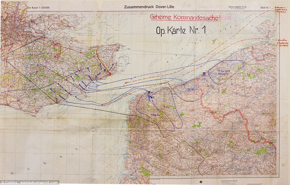 Further maps illustrate Nazi Germany's plans for Operation Sealion - an audacious plot for the eventual invasion of Britain from mainland Europe - with a further image mapping out the exact route Queen Elizabeth II's coronation took through London when she was crowned Queen in June 1953.