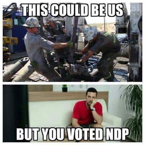 At least some on the left like Damngrumpy get it. A crash in Alberta will affect the entire country, I know a lot of folks from the East Coast that are now very in a lot of trouble, because they depended on those Alberta jobs to support their families. And they did not go there out of greed. In the truck driving industry from NS, PEI to Newfoundland, drivers work 4 on 4 off at an hourly rate that varies between 14 and 18 dollars an hour. That is why they come to Alberta, because the wages in these places are garbage and the work is part time. That is what started happening in Ontario, and that is why I left.